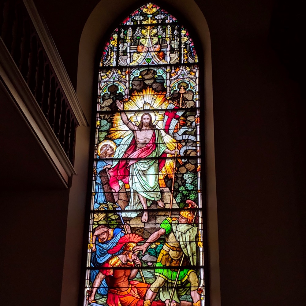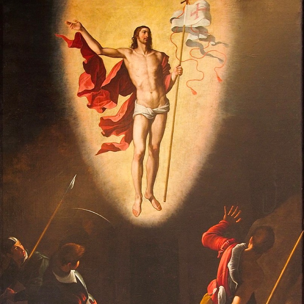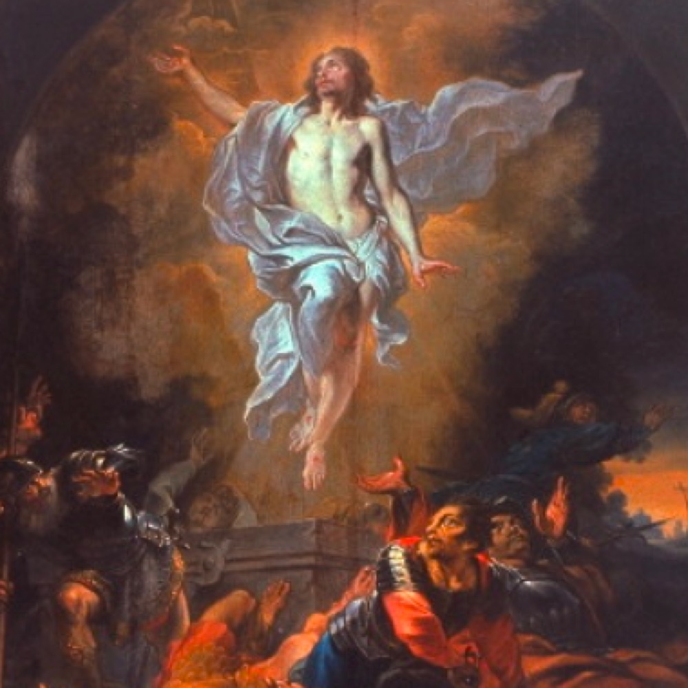 The body of Jesus is placed in the tomb on the evening of Good Friday. His soul descends into the realm of the dead to announce to the Just the tidings of their redemption. Fearing the body of Jesus will be taken, the chief priests place guards at the tomb. On the third day Jesus rises from the dead, glorious and immortal. The earth quakes as the angel rolls back the stone, the guards flee in terror. The holy women coming to anoint the body of Jesus are amazed and frightened to find the tomb open. An angel calms their fears: “He is not here. He has risen as He said.” Jesus appears to Mary Magdalen and Peter and two disciples on the way to Emmaus. That evening He appears to the apostles behind locked doors: “Peace be unto you… do not be afraid.” Jesus breathes on them and gives them the power to forgive sin.