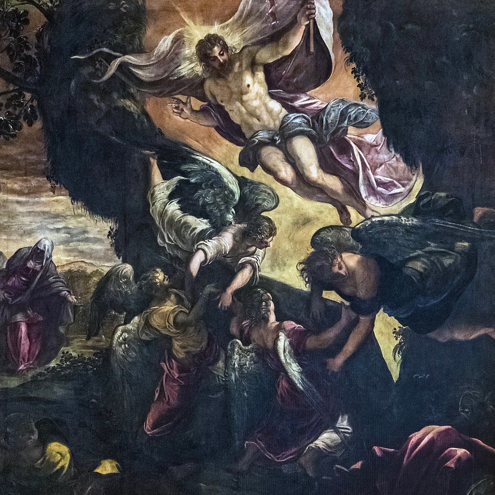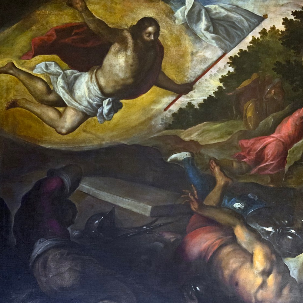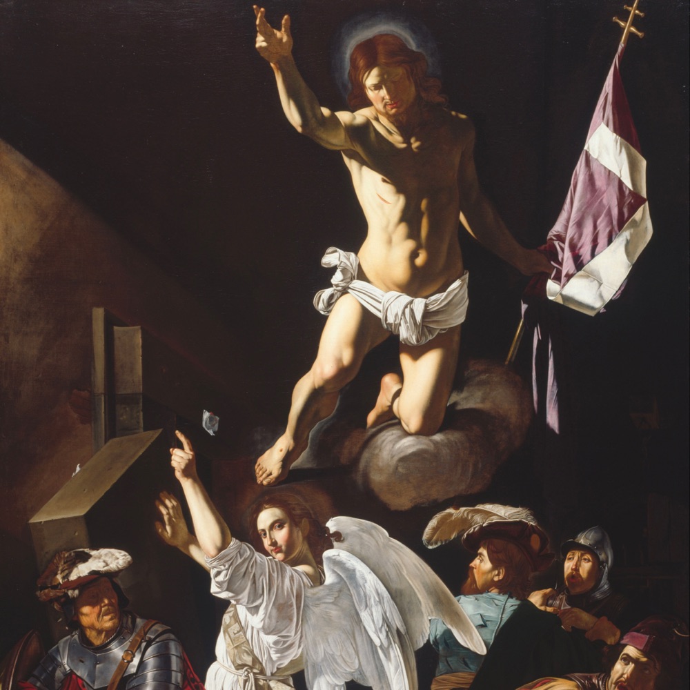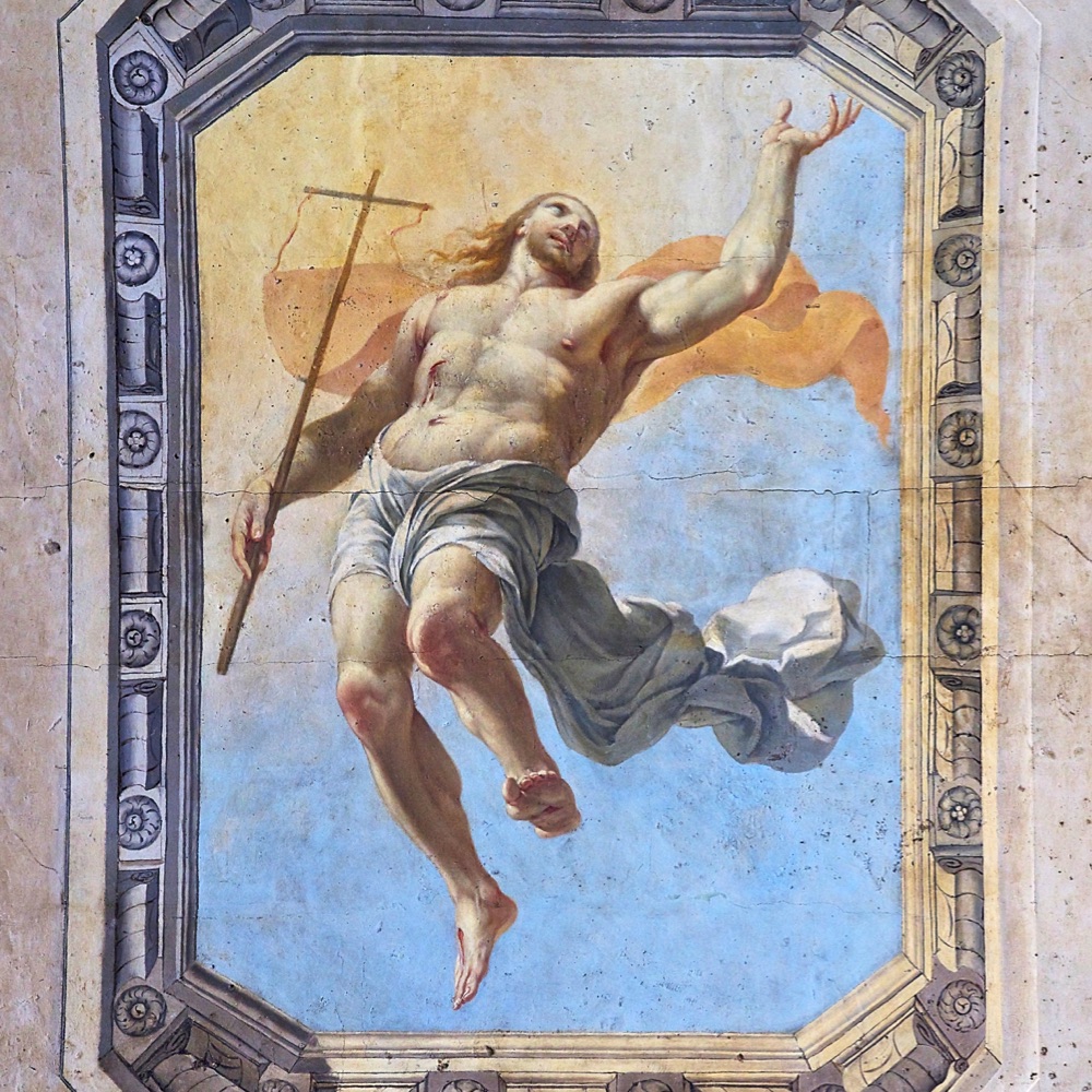 The body of Jesus is placed in the tomb on the evening of Good Friday. His soul descends into the realm of the dead to announce to the Just the tidings of their redemption. Fearing the body of Jesus will be taken, the chief priests place guards at the tomb. On the third day Jesus rises from the dead, glorious and immortal. The earth quakes as the angel rolls back the stone, the guards flee in terror. The holy women coming to anoint the body of Jesus are amazed and frightened to find the tomb open. An angel calms their fears: “He is not here. He has risen as He said.” Jesus appears to Mary Magdalen and Peter and two disciples on the way to Emmaus. That evening He appears to the apostles behind locked doors: “Peace be unto you… do not be afraid.” Jesus breathes on them and gives them the power to forgive sin.